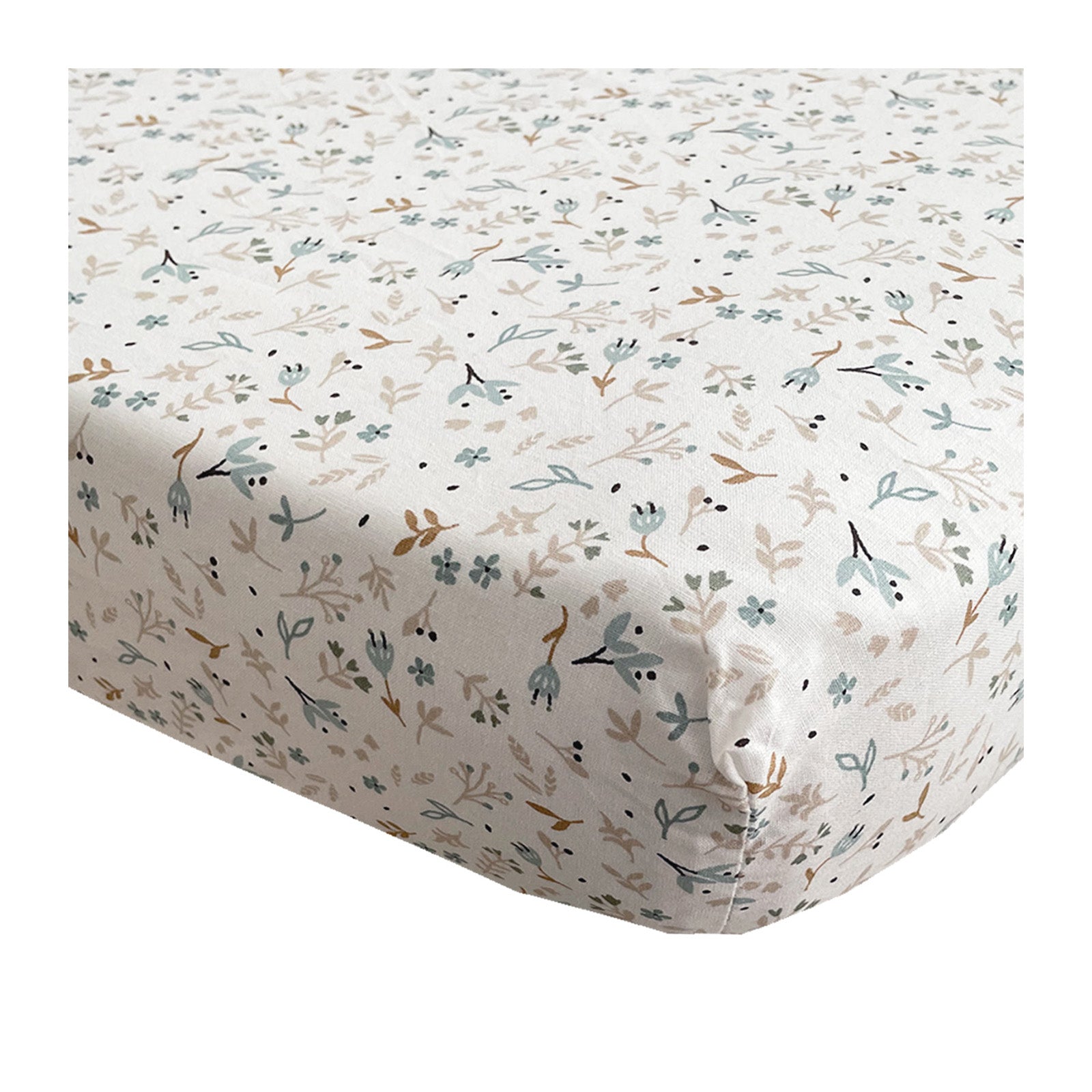 De charmante Blossom print met kleine bloemen in zachte tinten groen, beige en camel geeft het hoeslaken een frisse, vrolijke en tijdloze uitstraling. Deze subtiele bloemenprint past perfect in elke baby- of kinderkamer en zorgt voor een sfeervolle, rustgevende omgeving.