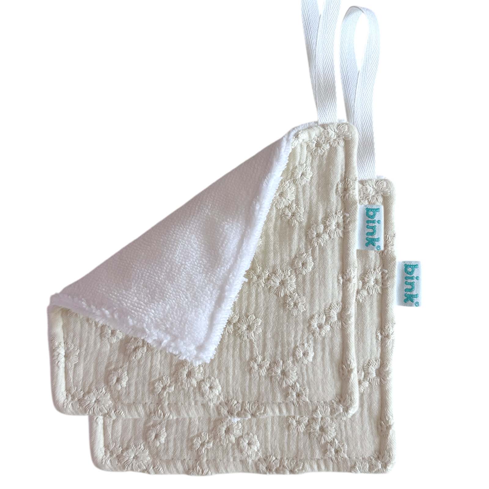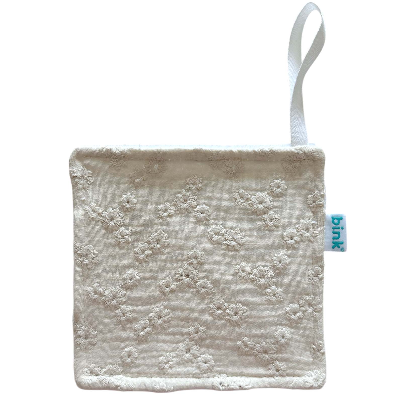 BINK Bedding Speendoekje Esmee ecru – 15x15 cm – 100% katoen met geborduurde bloemen en zachte bamboe achterkant