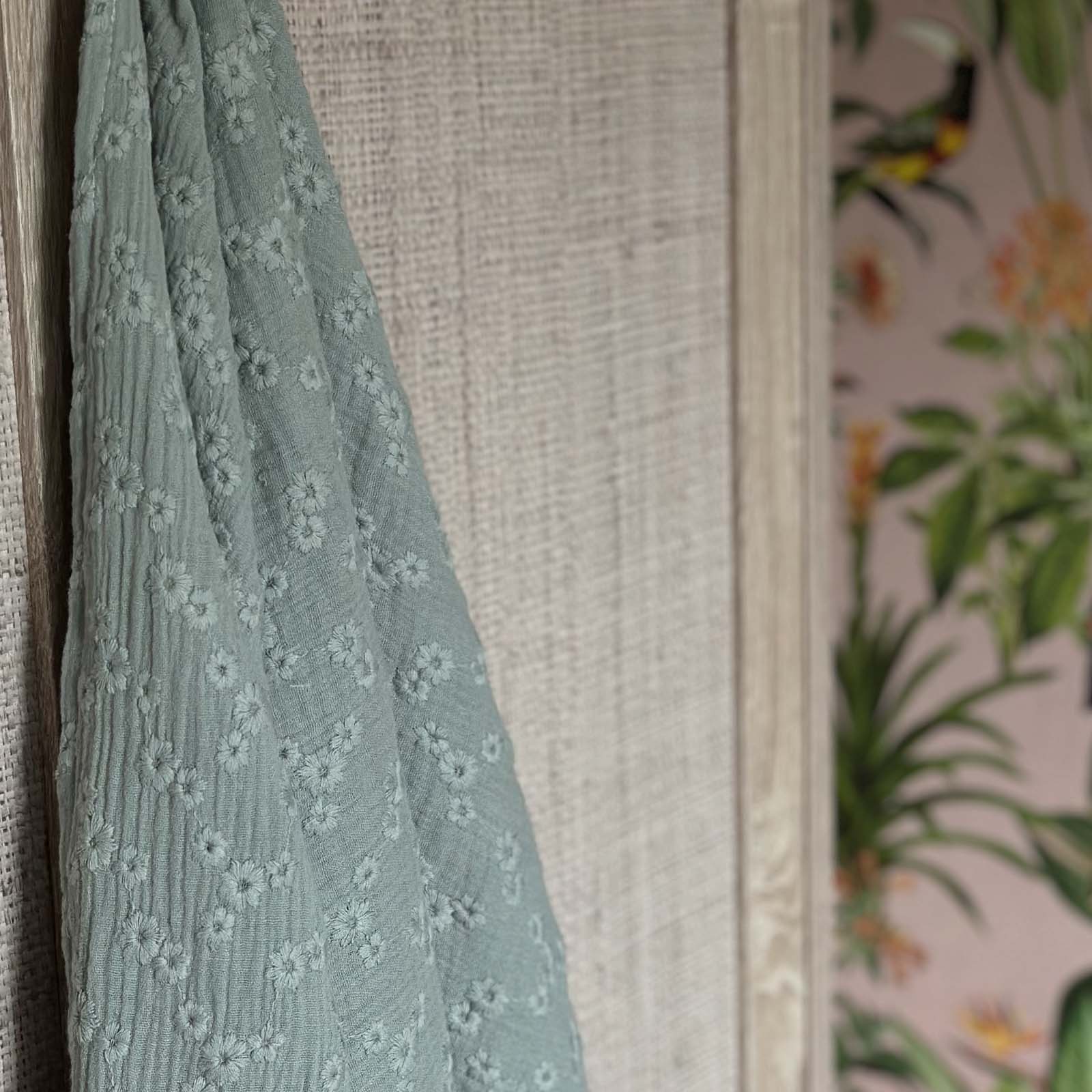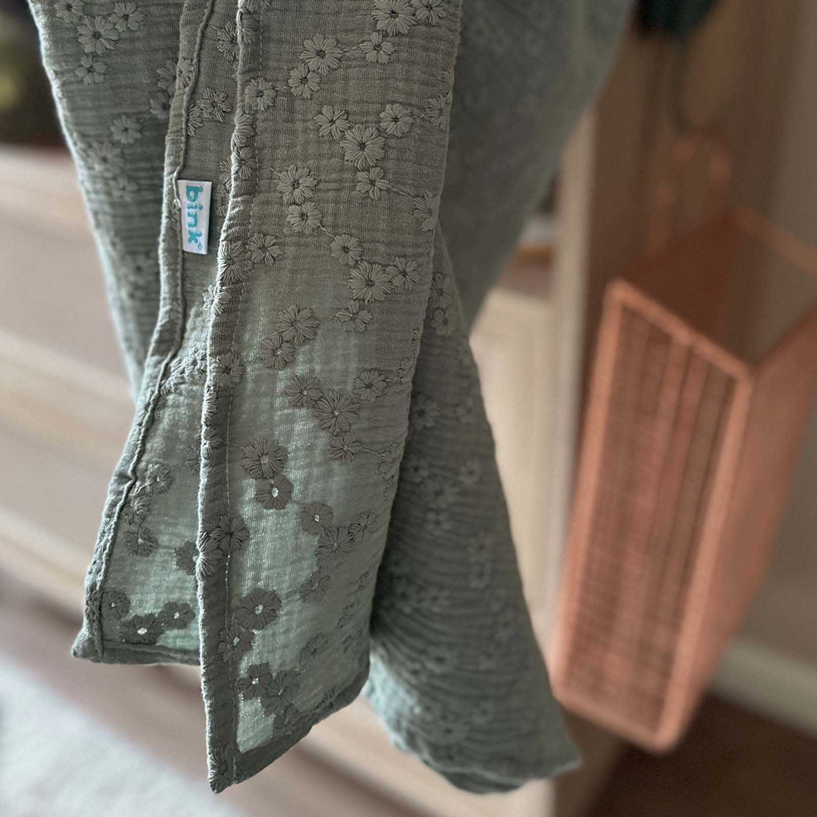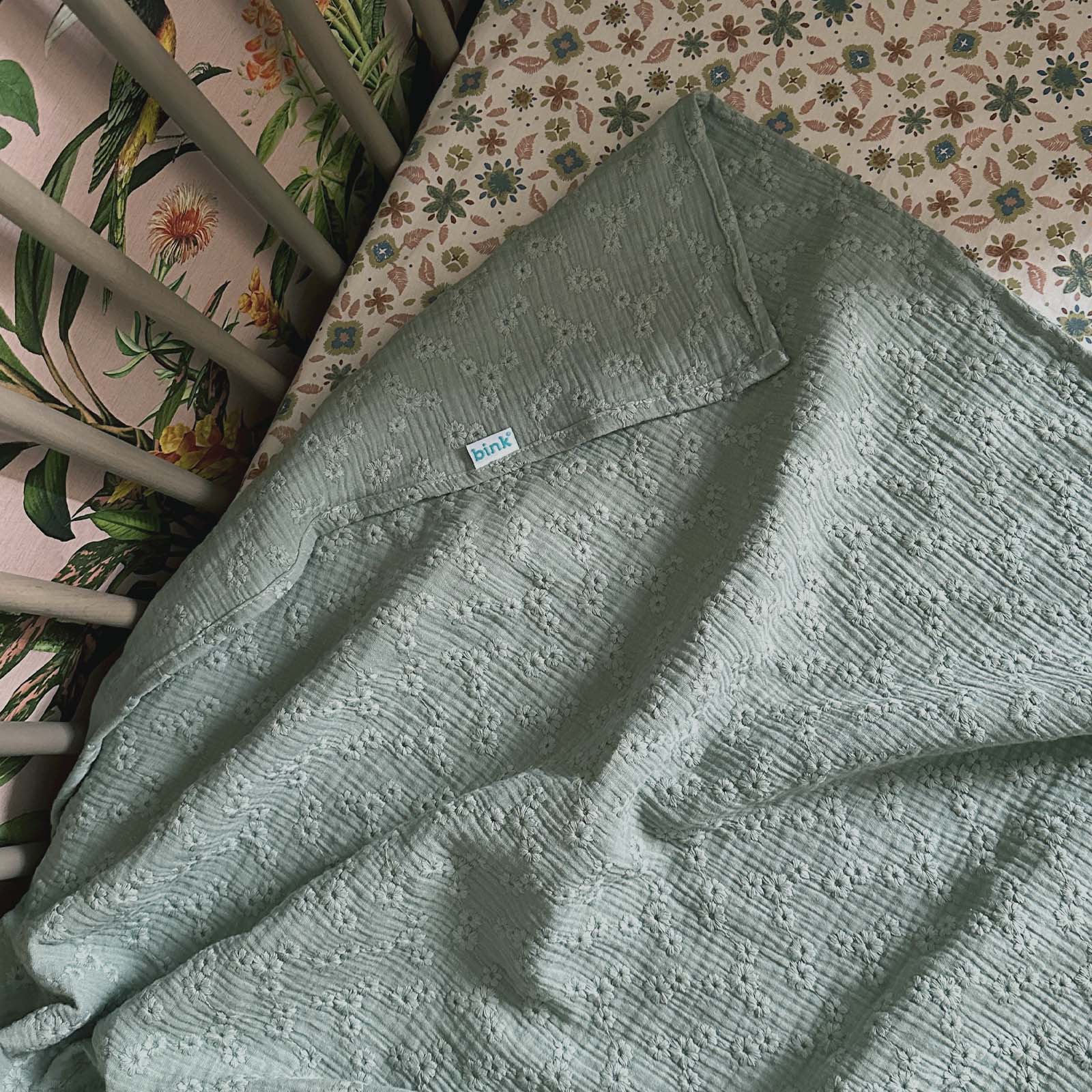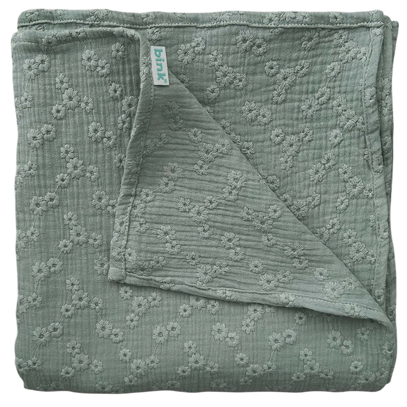 BINK Bedding Hydrofieldoek XL – Swaddle XL – 120x120 cm – Esmee groen – 100% katoen met geborduurde bloemen