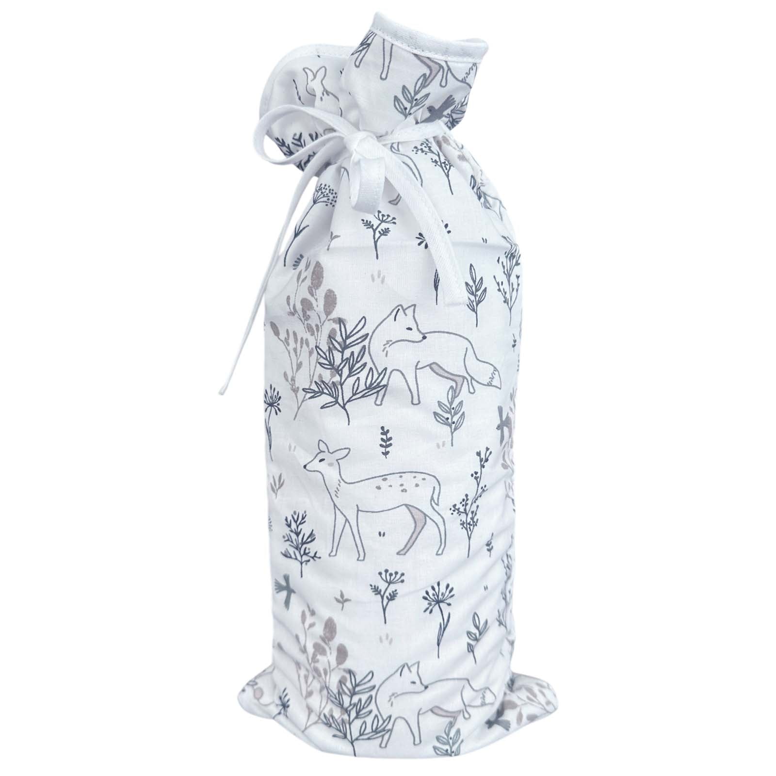 De kruikenzak Bas van BINK Bedding is gemaakt van zachte katoenen stof met een schattige bosdierenprint. Zwarte lijntekeningen van vossen, herten en konijntjes, gecombineerd met subtiele beige accenten, creëren een rustige en natuurlijke sfeer. Deze kruikenzak is niet alleen functioneel, maar ook een stijlvolle toevoeging aan de babykamer.