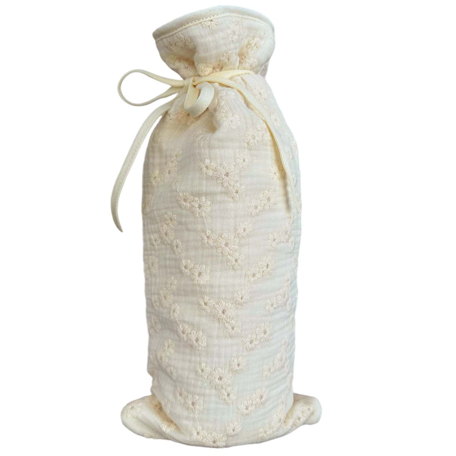 De kruikenzak Esmee van BINK Bedding is aan de buitenzijde gemaakt van prachtige hydrofiele stof, afgewerkt met elegante broderie. De subtiel geborduurde bloemen voegen een zachte, romantische sfeer toe aan de details van de babykamer, waardoor kruikenzak Esmee niet alleen functioneel is, maar ook een stijlvolle toevoeging aan het interieur.