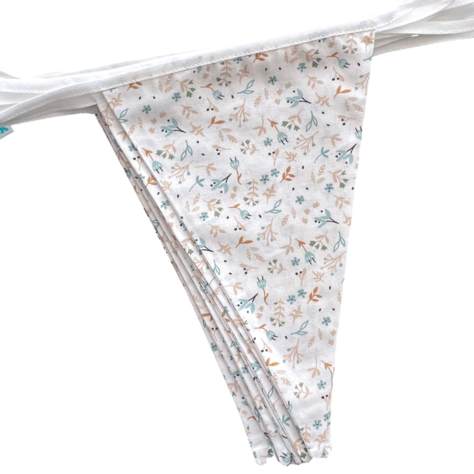 Vlaggenlijn Blossom van katoen met bloemen in naturel tinten is een prachtige en sfeervolle decoratie voor verschillende gelegenheden.