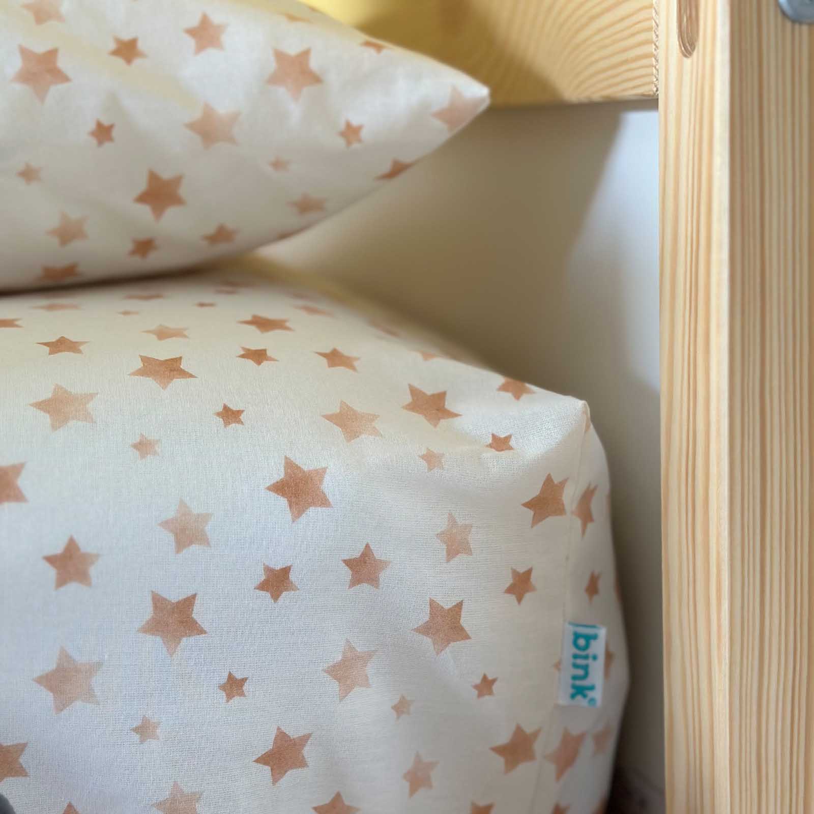 Dekbedovertrek Sterre kun je ook leuk combineren met een hoeslaken met print uit de BINK Bedding collectie.
