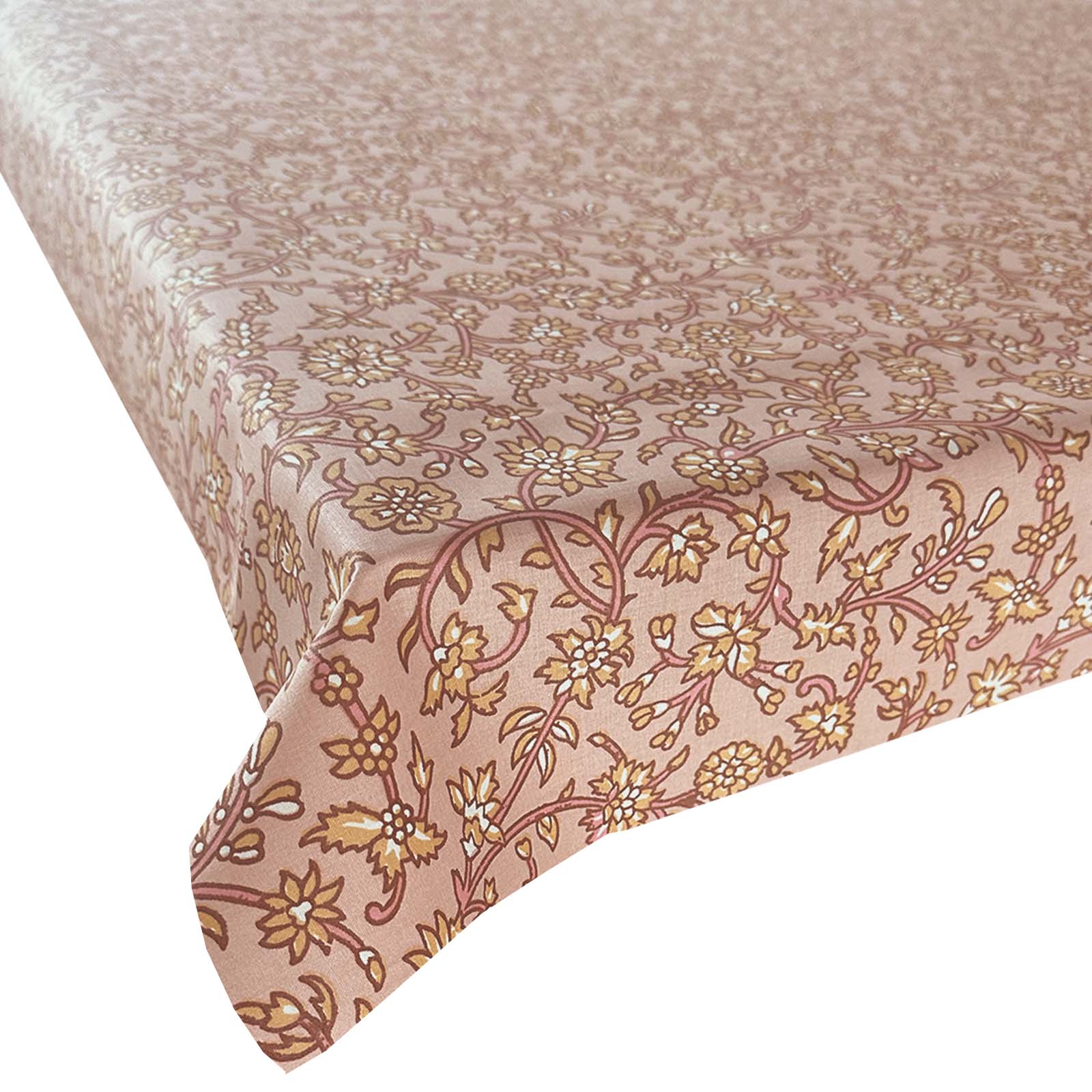 Het BINK Bedding tafelzeil Suze brengt direct een warme, sfeervolle uitstraling aan elke rechte tafel. De prachtige bloemenprint in roze, bruin, goudgeel en offwhite op een peachroze ondergrond zorgt voor een vrolijke en stijlvolle tafelsetting. Ideaal voor dagelijks gebruik, feestjes, kinderfeestjes of buiten eten – dit tafelkleed maakt van elk moment iets bijzonders.